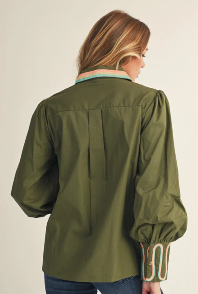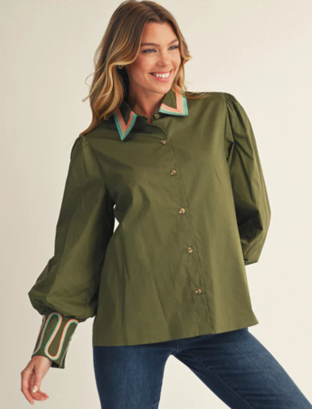 Embroidery Accent Button Down Shirt