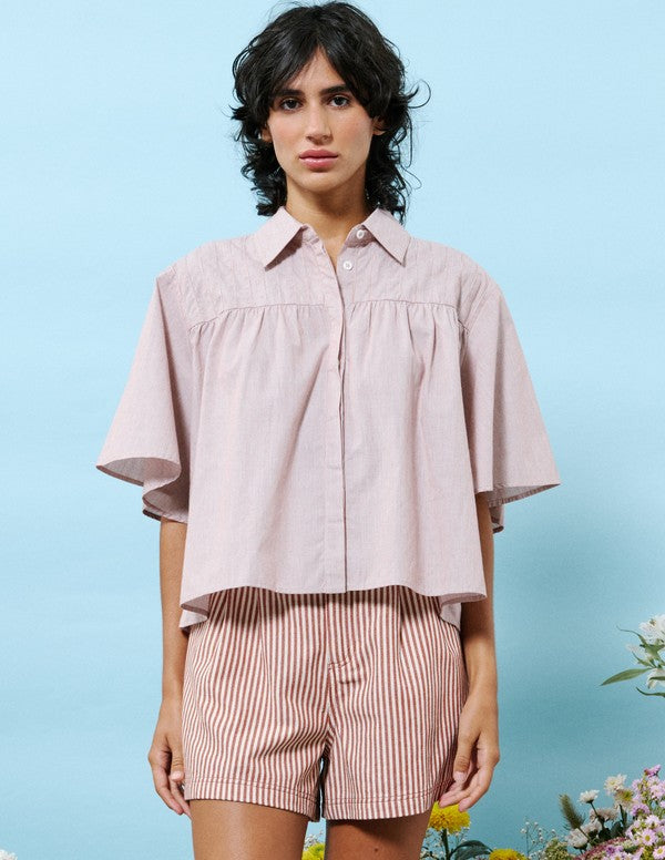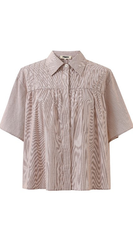 The Leissa Top delivers sophisticated simplicity through thoughtful design. Its lightweight, flowing fabric and short sleeves create an effortlessly polished aesthetic, while the understated stripe detailing adds visual interest without overwhelming. The full button front provides styling flexibility and easy layering capability. Crafted from premium materials, this piece resists pilling and maintains its shape through regular wear, making it a dependable investment for a refined wardrobe.